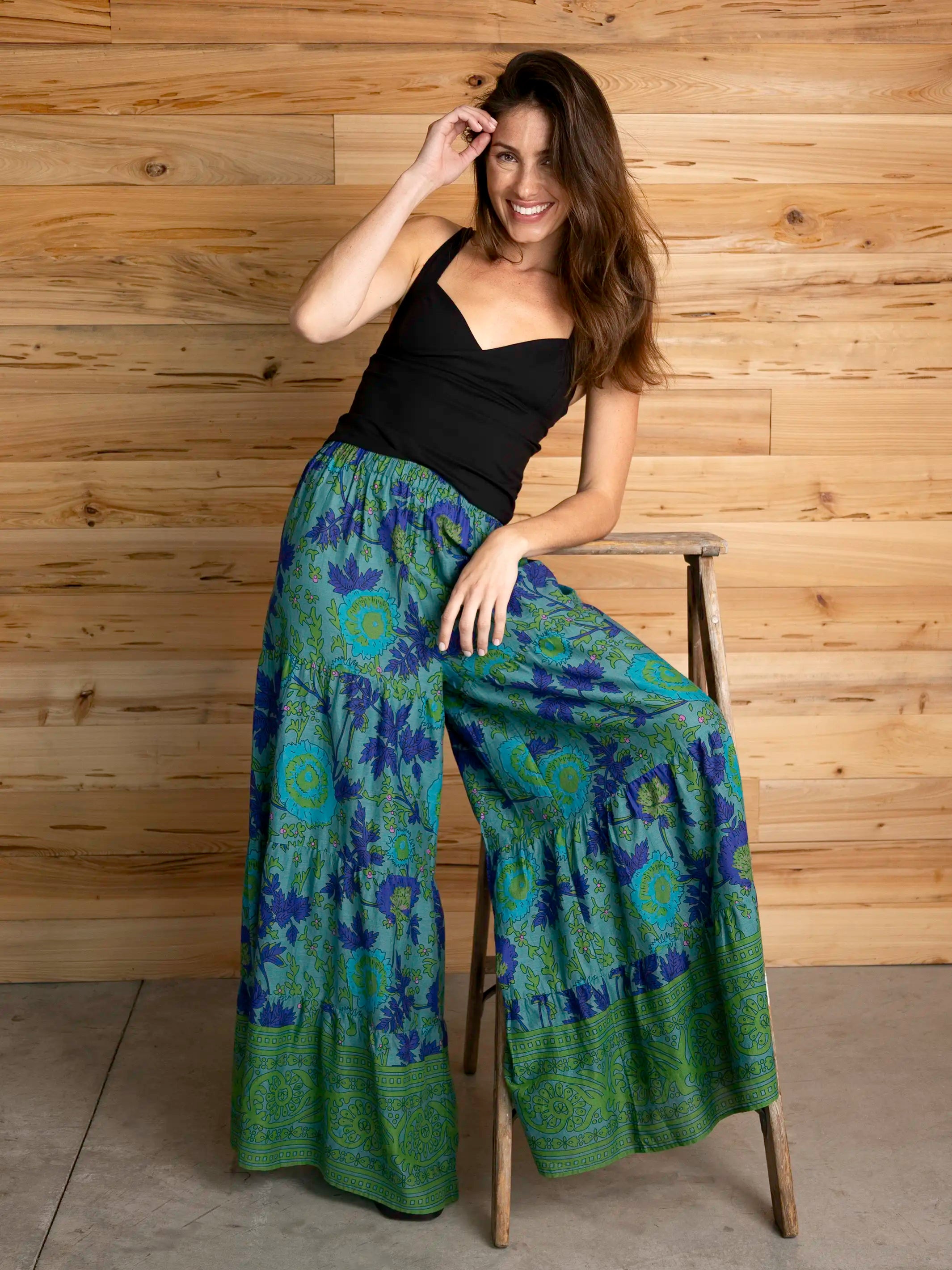 Maribel Top - Teal Sage Border