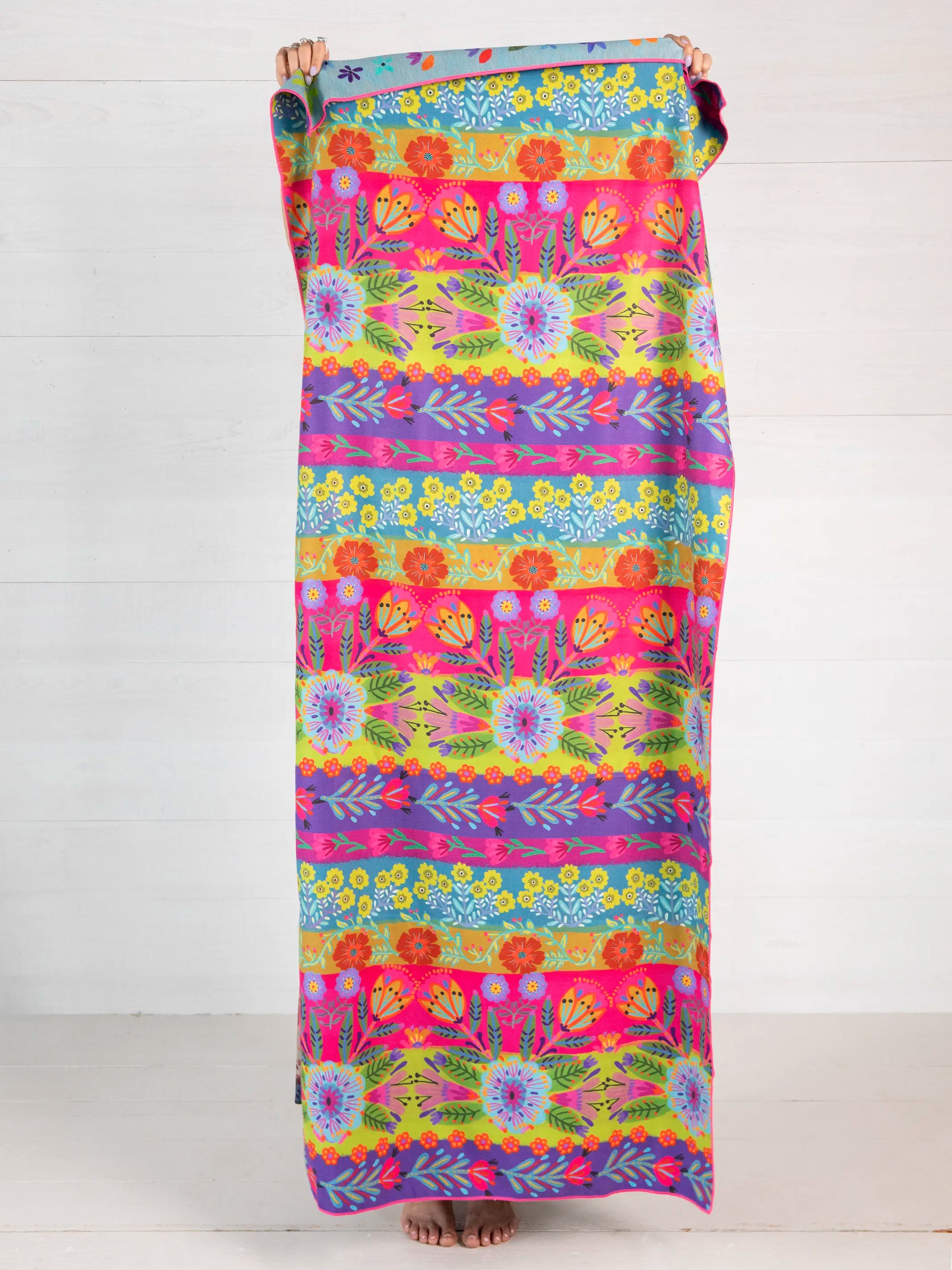 Two vibrant designs in one! Dries super fast and sand shakes right off!